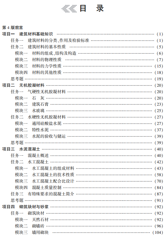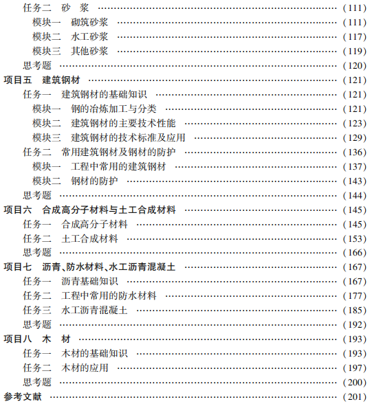 本书是高职高专教育国家级精品规划教材、普通高等教育“十一五”国家级规划教材,是按照教育 部对高职高专教育的教学基本要求和相关专业课程标准,在中国水利教育协会的精心组织和指导下编 写完成的。 全书共分八个项目,主要介绍水利工程中常用材料的组成、技术性能及其应用,包括建筑材 料基础知识、无机胶凝材料、水工混凝土、砌筑块材与砂浆、建筑钢材、合成高分子材料、沥青及其防水材 料、木材等内容。 本书与《建筑材料技能训练》(尹红莲等主编,黄河水利出版社出版)配套使用,后者侧 重基础知识训练、常规建筑材料的检测单项技能训练和综合能力训练。 本书适用于高职高专水利水电类专业以及建筑工程技术、工程监理、市政工程、道桥等土建类专业 建筑材料课程教学,也可作为工程技术人员的参考书。