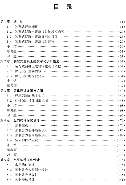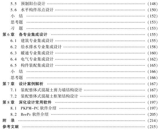 本书重点讲解了装配式混凝土建筑设计的基本知识、制图识图要求、竖向构件深化设计、水平构件 深化设计和各专业集成设计,并通过装配式剪力墙结构和框架结构设计案例解析、深化设计软件的介 绍,让读者系统了解装配式混凝土建筑深化设计内容和设计方法。 本书可供高等职业院校土木建筑类相关专业学生学习装配式建筑深化设计知识和技能训练,也可 供相关技术人员学习培训使用。